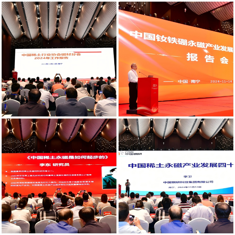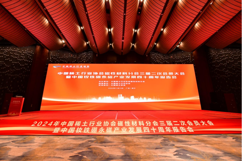 2024年11月14-15日,中国稀土行业协会磁性材料分会(以下简称“磁材分会”)三届二次会员大会暨中国钕铁硼永磁产业发展四十周年报告会在广西南宁成功召开。
